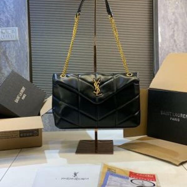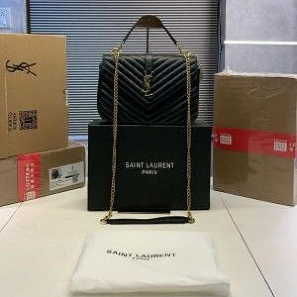 YSL SAINT LAURENT Grain De Poudre Matelasse Chevron Medium Monogram Satchel Black with box 5301